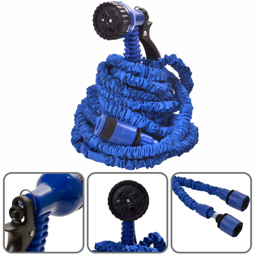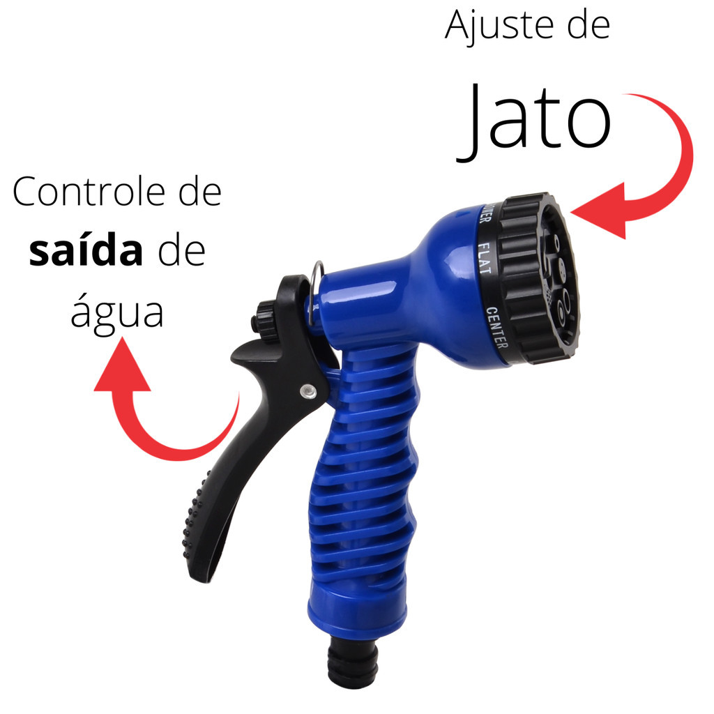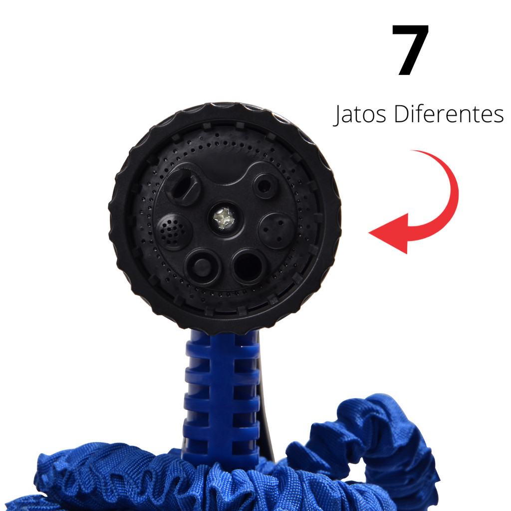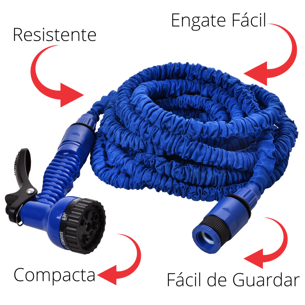 | Itens inclusos | 1× Mangueira Mágica Marga 15 m 1× Esguicho regulável com 7 jatos 1× Kit de engates rápidos |